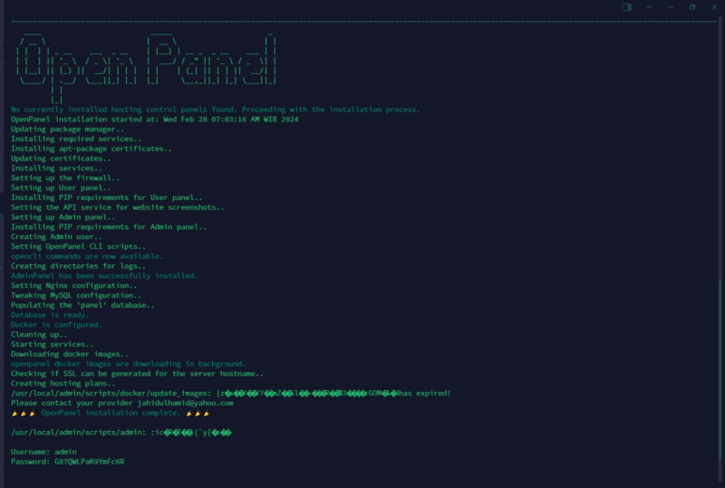 as you can see /usr/local/admin/scripts/docker/update_images: blablablabla has expired! Please contact your provider xxx