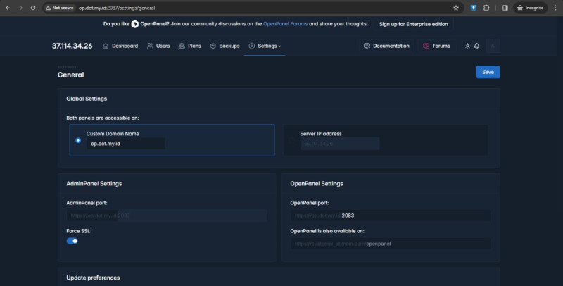 Open the panel serverip:2087
